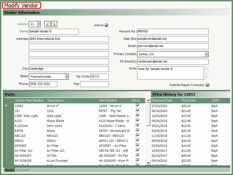Navigate To: Parts>Modify VendorOR Click the Shortcut in the top banner. |