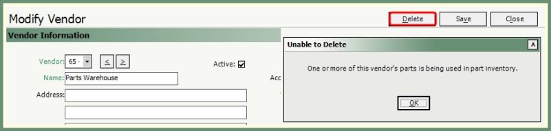 Associate vendor parts to existing part numbers from part maintenance once the vendor information has been saved.