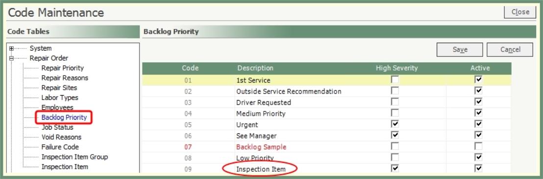 Designate an Inspection Item backlog priority code for failures created by the driver via DVIR.
