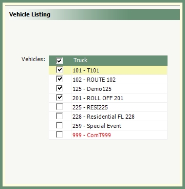 Navigate To: Report>Report Center>Routing>Vehicle Listing
