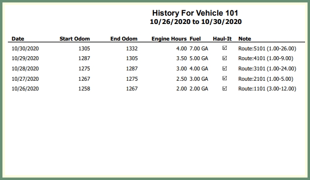 Navigate To: Report>Report Center>Routing>Vehicle Usage History