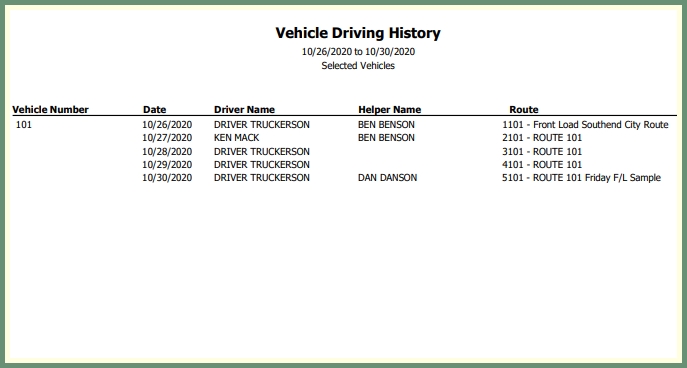 Navigate To: Report>Report Center>Routing>Vehicle Driving History